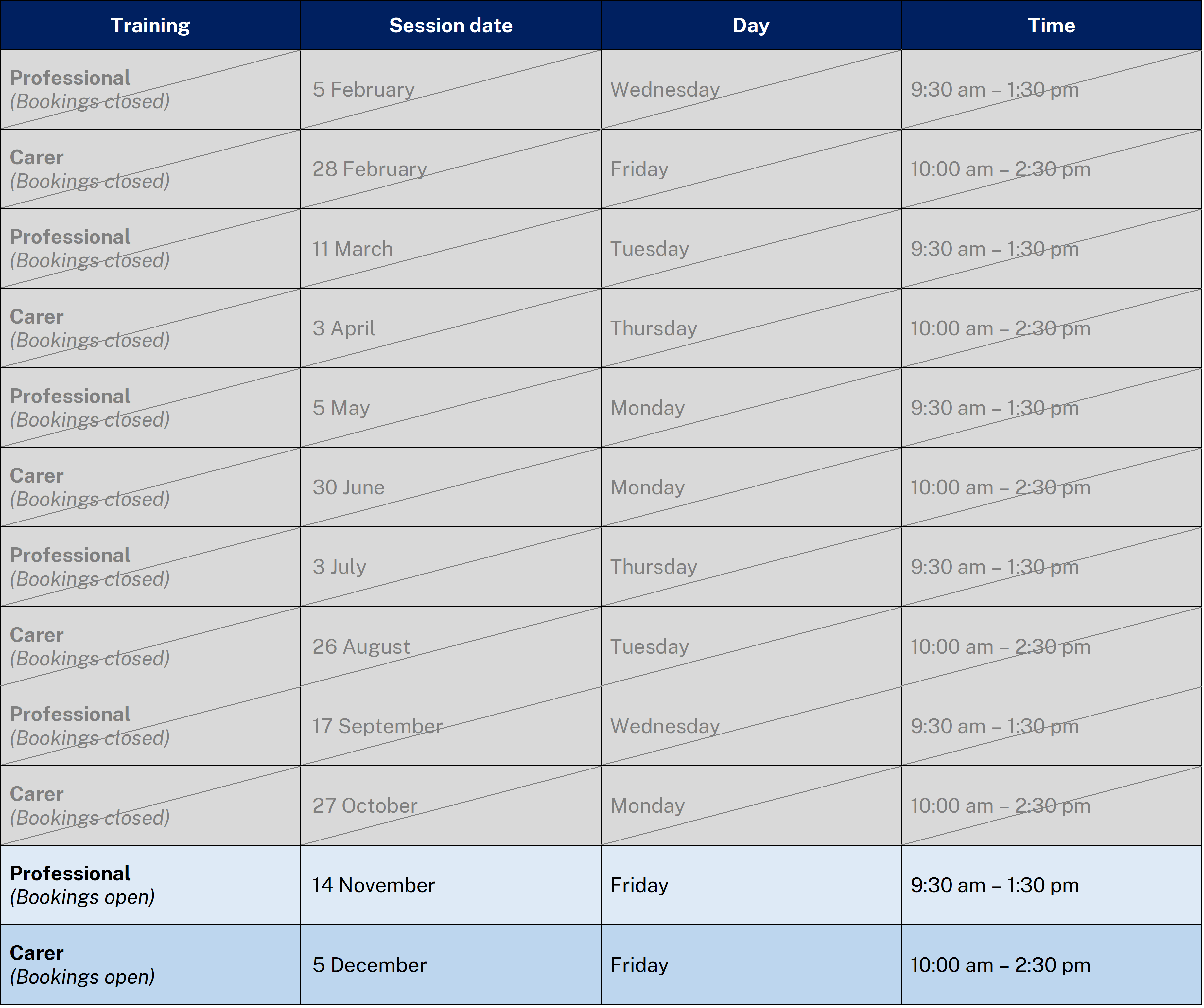 Our online training is very popular, and places are limited. But don’t worry if you miss out on your preferred dates – new sessions are added monthly! Please check the website for upcoming training, or email linkssupport@dcj.nsw.gov.au for access to our booking page.