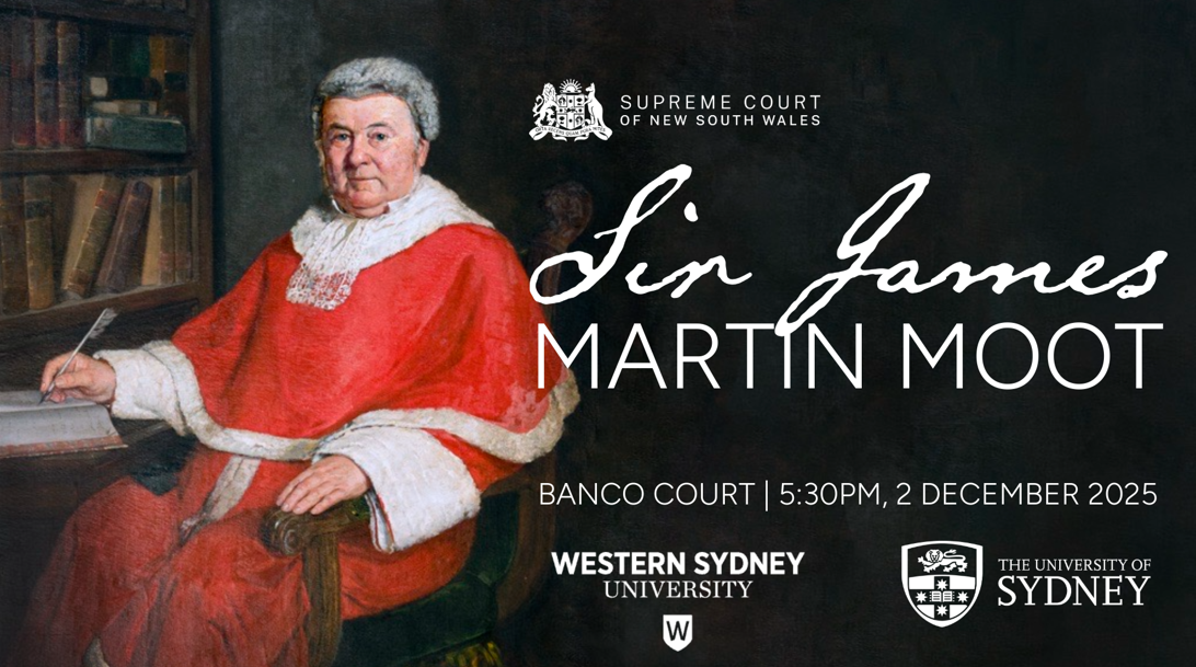 On 19 November 1873 Sir James Martin was sworn in as the fourth Chief Justice of New South Wales. In honour of this remarkable man, students from Western Sydney University School of Law and The University of Sydney Law School will meet in the Banco Court on 2 December 2025 at 5.30pm to take part in the inaugural Sir James Martin Moot.